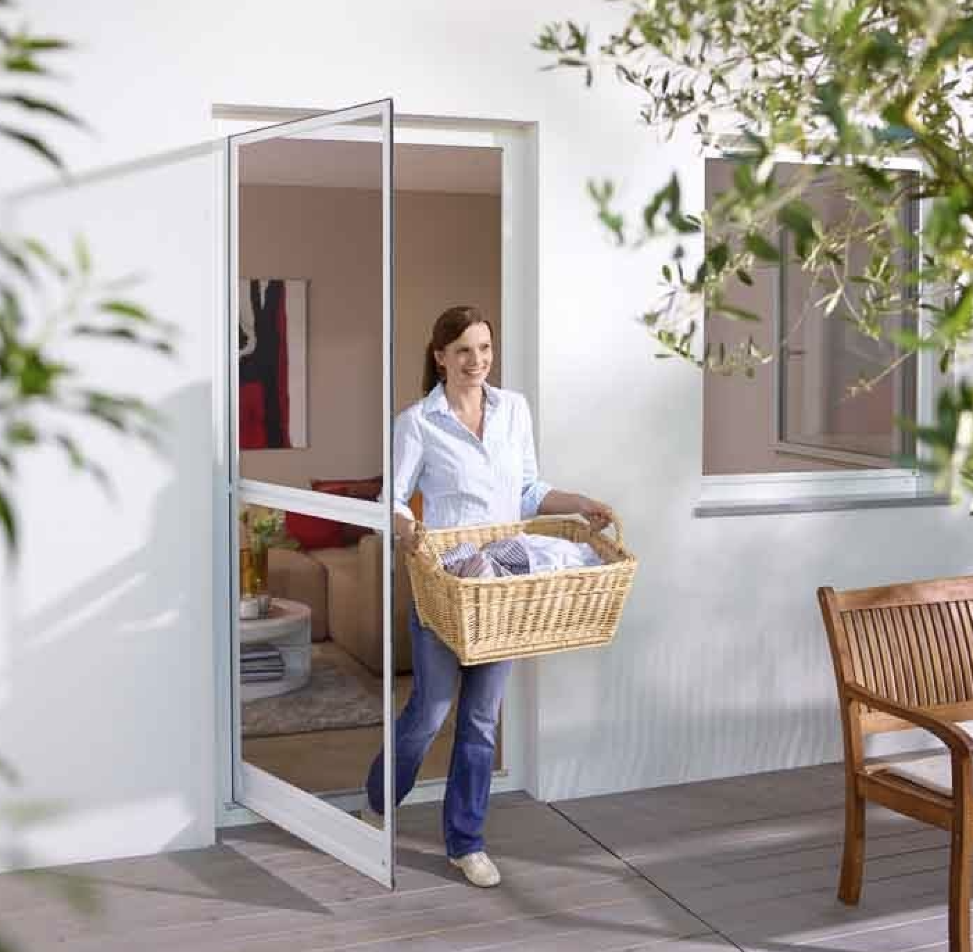Besonders für Terrassen- und Balkontüren eignen sich Fliegengitter bzw. Insektenschutzgitter in Form von Schiebetüren und Schieberahmen, da in Durchgängen eine flexible Handhabung des Insektenschutzes gewährleistet sein muss. Dank hochwertiger Materialien und intelligenter Montage überzeugen unsere maßgeschneiderten Insektenschutz-Schiebetüren auch in den größten Abmessungen funktional. Der Stoff lässt genügend Luft und viel Licht herein und wird daher im Innenbereich nicht als störend empfunden. Bis zu einer Höhe von drei Metern kann bei dieser Fliegengittertür auf Querstangen verzichtet werden. Dadurch sind große, zusammenhängende Stoffflächen möglich und der Blick nach draußen bleibt frei.